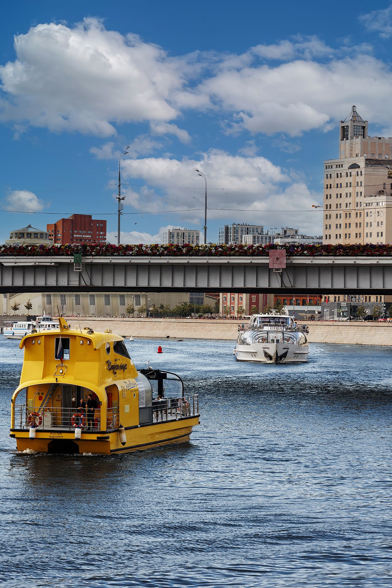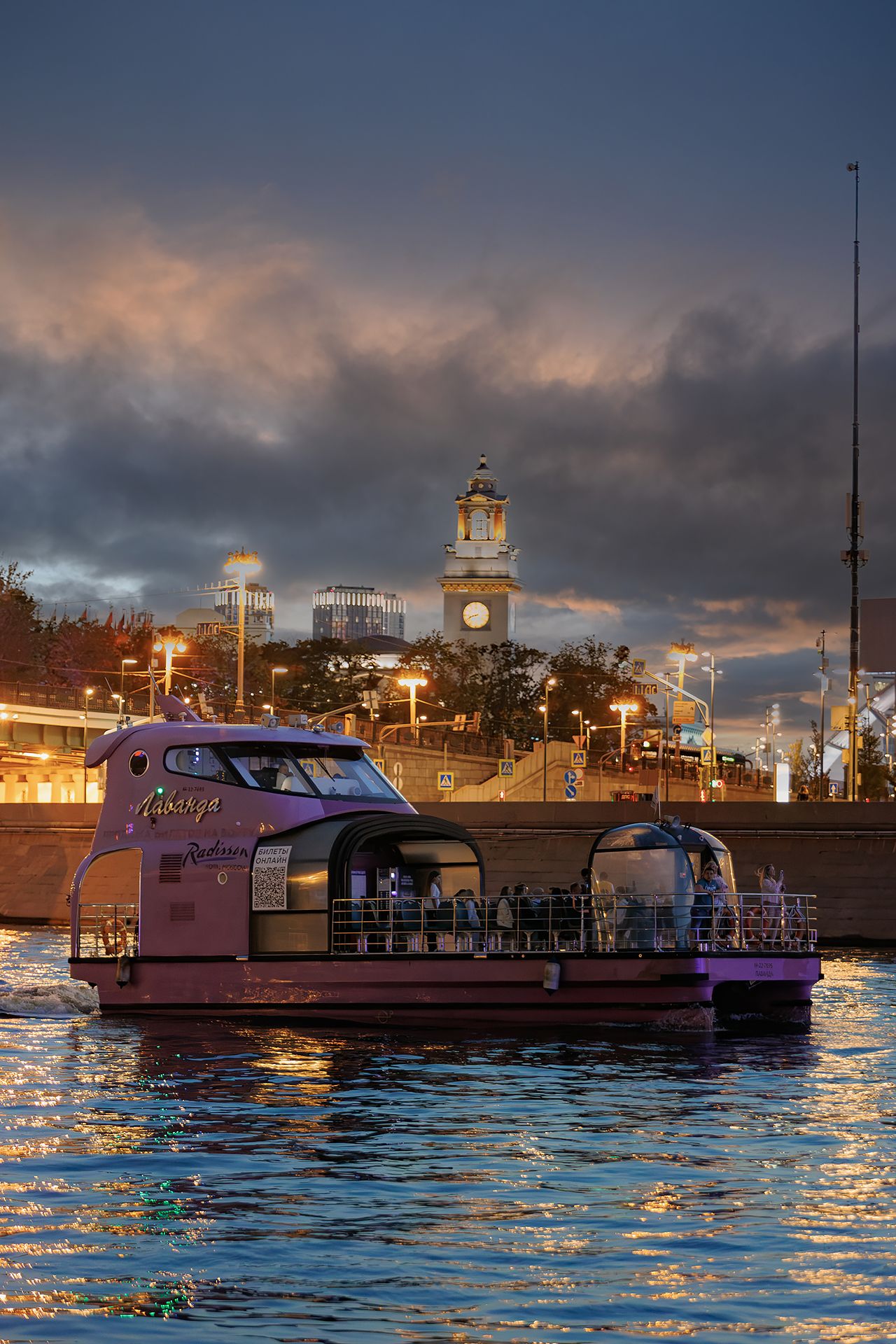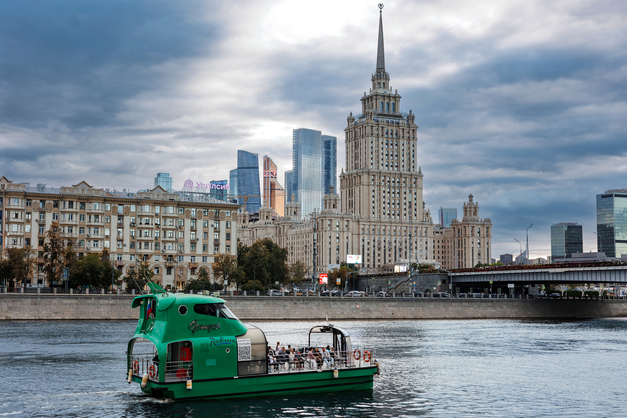 The route’s duration is 1 hour. On board of our river tram you can observe stunning views of the capital’s main business center – “Moscow-City”. The tram will also pass by the Government House, Moscow City Hall, Kievsky Railway Station, Novodevichy Convent and other picturesque buildings, after which it will turn round at Berezhkovsky Bridge it will go to the Mocow-City and then return back to the pier - you won't be able to leave without beautiful photos.